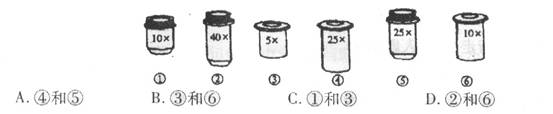 5、某同学使用的显微镜有如下一些镜头可供选择,若要在同一视野中看到的细胞最多,宜选用的一组镜头是: