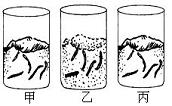 22.为探究环境因素对蚯蚓生活的影响,有同学设计了下面的实验:取3个大小一样的广口瓶,分别贴上甲、乙、丙标签。在甲、丙瓶中放入湿润的肥沃土壤,在乙瓶中放入经烘干的肥沃土壤。然后在3瓶中同时各放入5条大小及生活状况相同的蚯蚓(如下图)。观察一段时间后:
