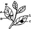 14、若将某植株一片叶的主脉切断(右图中甲),另一片叶两面都贴上不透明的锡箔纸(右图中乙),黑暗中放置24小时后光照4小时。取下两叶经脱色后用碘液处理,A、B、C三个部位一般不会呈现蓝黑色的是