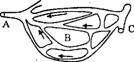 16、右图为人体局部血液循环示意图,其中A、C是动脉血管,B是毛细血管,A、B、c内流动的均为动脉血。则B的主要功能是