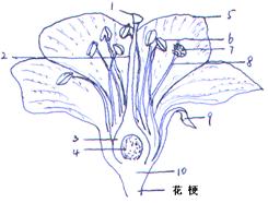 右图是桃花结构图,请写出各序号所代表的结构名称