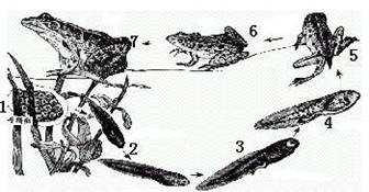 25、3.“黄梅时节家家雨,青草池塘处处蛙。”春末夏初,青蛙“呱、呱、呱”的叫声此起彼伏,如果寻声找去,你会发现池塘中的青蛙正在抱对。不久,如果你再来,会在水中看到小蝌蚪。如果你继续观察下去,你会看到青蛙外形那魔术般变化的全过程。你知道原因吗? 动动脑,回答下列问题: