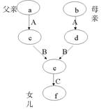 ⑴a、b分别表示父母的体细胞,他们的染色体数均为_______条。⑵A表示父母分别产生生殖细胞的过程,生殖细胞c、d分别叫做_______和_______。它们的染色体数均为_______条,比a、b减少了_______。