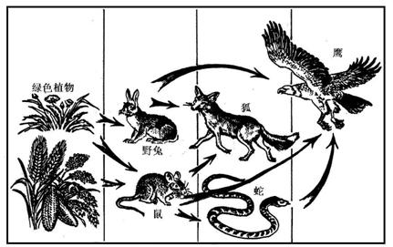 (2)图中绿色植物→野兔→狐构成了一条 链,这些链彼此交错构成 。