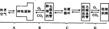 (2)过程B是指 ,它和过程D都是通过 实现的,与B、D两过程气体交换相适应的结构特点是