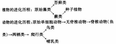 生物进化的趋势:从简单到复杂,从低等到高等,从水生到陆生。