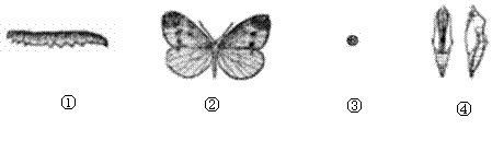 菜青虫是一种重要的农业害虫,主要危害十字花科蔬菜。如下图所示为菜青虫发育过程的四个阶段,请据图回答:(6分)