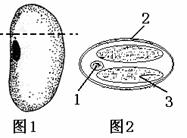33.右图中,图1表示一粒浸软的菜豆种子,某同学用刀片