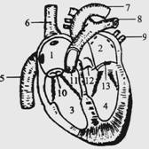 6上腔静脉 7主动脉 8肺动脉 9肺静脉