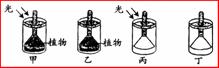 如右图,证明“在有光条件下,氧气是否由绿色植物释放出来”和“光是植物进行光合作用的条件”的对照实验装置分别是