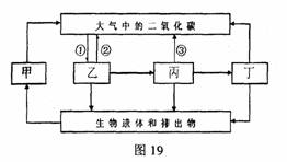 1.(5分)图19是生物圈中碳循环的示意图,请据图分析回答问题: