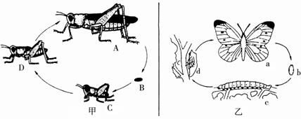 (3)d表示的发育时期叫做______________。如果乙图所示的昆虫是一种农业害虫,在整个发育过程中,对农作物危害最严重的时期是______________(填图中字母)。