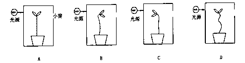 9.在方形暗箱内放入一盆幼苗,暗箱一侧开一小口,固定光源的光可从窗中射入。把暗箱放在旋转器上水平旋转,并保持每周15min的匀速转速。一周后的情况是 ( )