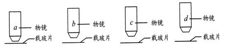 31. 用显微镜的一个目镜分别与4个不同倍数的物镜组合来观察蛙的上皮细胞装片。当成像清晰时,每一物镜与载玻片的距离如下图所示。如果载玻片位置不变,用哪一物镜在一个视野中看到的细胞最多( )