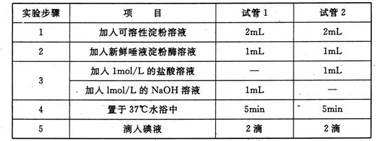 40. (10分)为验证p H对唾液淀粉酶活性的影响,某学生设计了下表中的实验方法步骤。