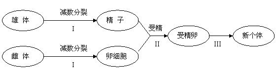 B.有性生殖过程是指I+II
