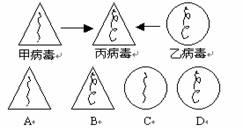 4.如图所示,甲、乙为两种不同的病毒,经人工重建形成“杂种病毒丙”,用丙病毒侵染植物细胞,在植物细胞内增殖后产生的新一代病毒就是A、B、C、D中的 ( )
