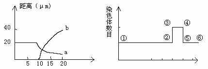 (1)进行分裂的该细胞的长度约是 μm,图A中曲线b 表示 。图A曲线a距离减少的原因是 。