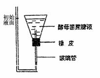 下图是某同学为了研究酵母菌的细胞呼吸所设计的一个实验装置。开始时锥形瓶中装满了质量分数为5%的蔗糖溶液,并在其中加入了适量的酵母菌,将装置密封并静置一段时间后记录下初始液面的数据,实验过程中液体会进入玻璃管,从玻璃管的刻度上可以读出进入玻璃管的液体量。表中是该同学在不同的温度条件下进行实验时所记录的数据与初始液面数据的差值。(单位:mL)