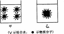 (1)等量亲水性不同的两种物质分散在甲、乙两个含有等量水的容器中,如下图所示。容器的自由水量甲比乙______________。