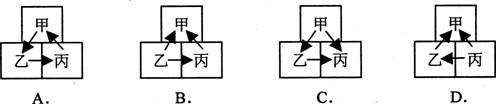 24.下图表示某植物相邻的3个细胞,其细胞液浓度依次为甲>乙>丙,正确表示它们之间水分子渗透方向的是
