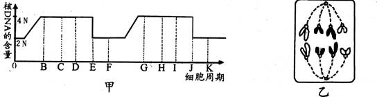 50.(5分)下图甲为某生物细胞在有丝分裂的细胞周期中,细胞核内 DNA相对含量的变化曲线,图乙是该生物细胞分裂过程中某一时期的图像。请据图回答: