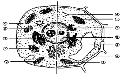 (4)具有双层膜的结构有 (填号码);含有DNA的结构有 (填号码)。