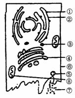 (9分)在一定时间内使某种动物细胞吸收放射性同位素标记的氨基酸,经检查发现放射性同位素出现在图中的①②③④⑤⑥⑦部位。请据图回答下面的有关问题(题中[