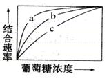 22.葡萄糖在进入红细胞之前必须先与细胞膜上的载体结合.这种结合的速率会影响葡萄糖进入细胞的快慢。图中a、b、c分别代表甲、乙、丙三种不同细胞的葡萄糖的结合速率曲线。那么.在葡萄糖浓度低的情况下.这三种细胞对葡萄糖吸收快慢的程度是 :