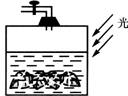 30.在右下图所示的玻璃容器中,注入一定浓度的NaHCO3溶液并投入少量的新鲜绿叶碎片,密闭后,设法减小液面上方的气体压强,会看到叶片沉入水中。然后再用光照射容器,又会发现叶片重新浮出液面。光照后叶片重新浮出液面的原因是 ( )
