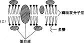 (2)把结构中的② 平展在空气一-水的界面上,发现展开的面积大约是原结构表面积的两倍,由此可说明②在结构中的分布状态是 。