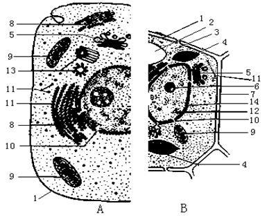 (9)若某细胞同时有AB图中各种细胞器,则为 细胞。