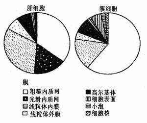 下图表明两种细胞中各种膜的相对量,下列说法不正确的是 ( )