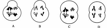 16.下图属于初级精母细胞分裂过程中染色体分配的示意图是