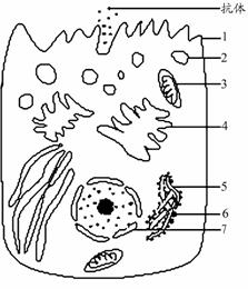 47.(7分)右图是动物某分泌细胞。向细胞内注射用放射性同位素3H标记的亮氨酸,一段时间后,在细胞外检测到含有放射性的分泌蛋白质。请回答下列问题:(在[ ]内填写图中序号,并在序号后写出该结构的名称)