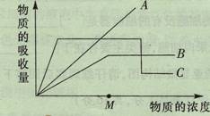 2.下图中A、B、C三条曲线分别表示三种物质通过细胞膜的情况,请观察后回答下列问题。