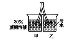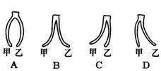 植物细胞可以通过渗透作用吸水或失水,将带“皮”的幼嫩的茎纵切后插入两烧杯中,如下图所示,已知b侧的细胞壁比a侧的细胞壁薄易伸展,判断30分钟后可能出现的形状变化是( )