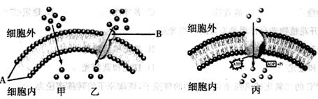 (2)图中甲物质跨膜运输方式是 ,甲、乙两种物质跨膜运输方式统称为 。丙物质跨膜运输方式是 。