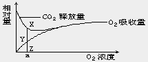 20.下图表示的是某植物的非绿色器官呼吸时O2 的吸收量和CO2 的释放量之间的相互关系,其中线段XY=YZ。则在氧浓度为a时有氧呼吸与无氧呼吸