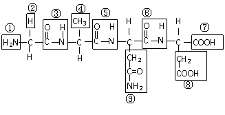 (1)该结构式中表示氨基的是(填序号) ,表示羧基的是(填序号) ,共有