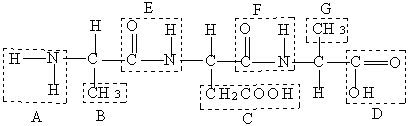 图中A表示_________,D表示_________ 。(写出基团的中文名称)由氨基酸分子形成该化合物的反应叫做_________,图中表示R基团的字母是_________,表示肽键的字母是_________。该化合物是由_________种氨基酸组成的,是______肽,形成过程分子量减少__________.合成该化合物的细胞器是__________,原核生物细胞中__________(有、没有)这种细胞器。