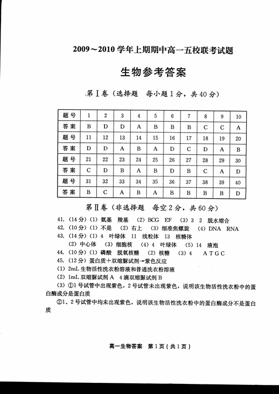 45.(1 2分)一般洗衣粉不易清除衣物上的奶渍,但是含有蛋白酶的生物活性洗衣粉则可以。该生物活性洗衣粉中的蛋白酶成分是否是蛋白质,一研究性学习小组用以下所给的条件进行了探究。如果你是小组中的一员,请完成下列实验: