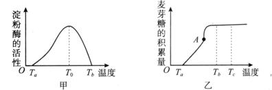 C.图乙中Ta和Tb的曲线段表明随着温度的升高,麦芽糖的积累量不再上升,酶的活性已达到最高
