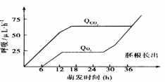 某研究性学习小组,对哈密瓜种子的萌发过程进行研究,如图是他们根据实验结果绘制的曲线图,其中QCO2表示CO2的释放量,QO2表示O2的吸收量。下列解释中,不正确的是( )