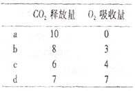 在a、b、c、d条件下,测得某植物种子萌发时CO2和O2体积变化的相对值如下表。若底物是葡萄糖,则下列叙述中正确的是