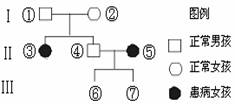 ⑷若Ⅲ⑥是患病男孩,⑤和④又