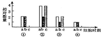 19. 下图中①-④表示某哺乳动物(2N)在有性生殖过程中不同时期的细胞,图中的a、b、c分别表示某时期一个细胞中三种不同结构或物质的数量。下列说法不正确的是( )