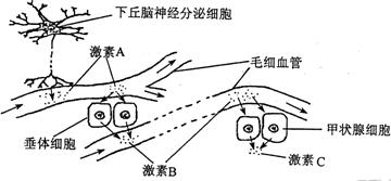 62.(18分)人体内激素分泌量过多或不足都会对机体有害,体内有一系列机制维持激素在血液中含量的相对稳定。如图表示下丘脑神经分泌细胞、垂体细胞、甲状腺细胞及它们分泌的激素之间的关系。据图回答: