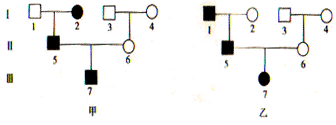 下面是两个有关红绿色盲遗传的家系,其中两个家系的7号个体色盲基因分别来自Ⅰ代中( )