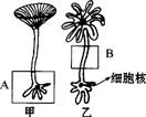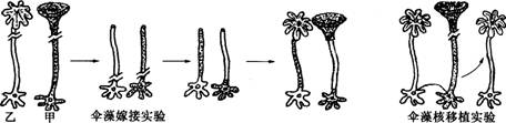 上 图),现将甲伞藻的A部分与乙伞藻的B部分嫁接在一起,